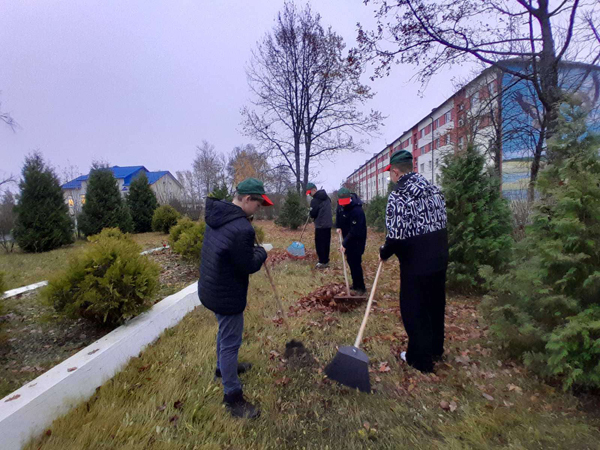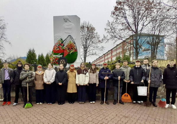 Активисты БРСМ и учащиеся ГУО «Гимназия г. Мяделя» провели субботник у памятника Скорбящей матери — братской могилы советских воинов в г. Мядель.