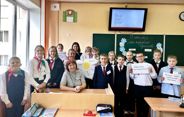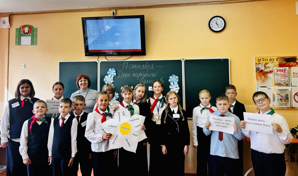На уроке ребята узнали об историческом значении этого праздника, о традициях и ценностях, которые помогают стране сохранять мир и единство. Особое внимание уделено роли Беларуси в укреплении дружбы и сотрудничества между народами. Творческие задания, обсуждения и викторины помогли ребятам почувствовать гордость за нашу Родину и понять, как важно быть вместе в любой ситуации. Такие уроки воспитывают в детях не только чувство патриотизма, но и уважение к истории, готовность действовать во благо своей Родины, стремление сделать свой край лучше.